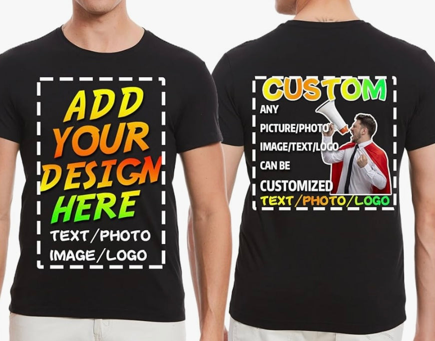 Bring your designs to life with our Custom T-shirt printing service where we apply your artwork designs to high quality T-shirts, perfect for promoting your brand, business, team or personal style we have you covered saving you time & money